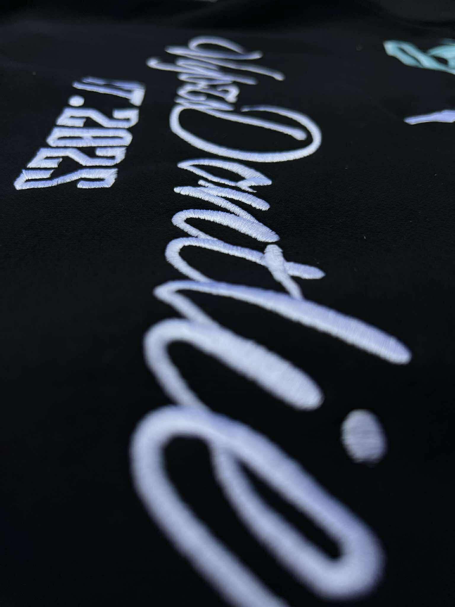 - Embroidered